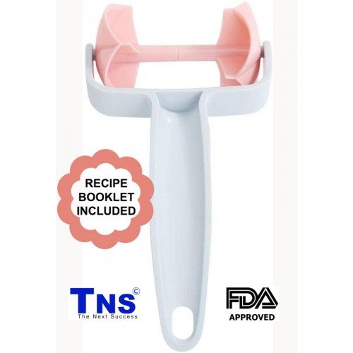 The perfect gift for budding bakers. Also works with children’s play dough. The TNS Rose pattern is engraved on the rolling drum. This kitchen gadget is simple to use. Simply move the roller over your dough or fondant to create evenly cut rose cake decorations or pastries. Easy to grip handle prevents wrist strains and is a time saver for creating consistent roses. Free recipe booklet included. Made from FDA approved food grade plastic. Handle length: 4. 5 inches (11. 5 cm), Drum width: 3. 5 inches (9 cm) Drum diameter: 2 inches (5 cm).
